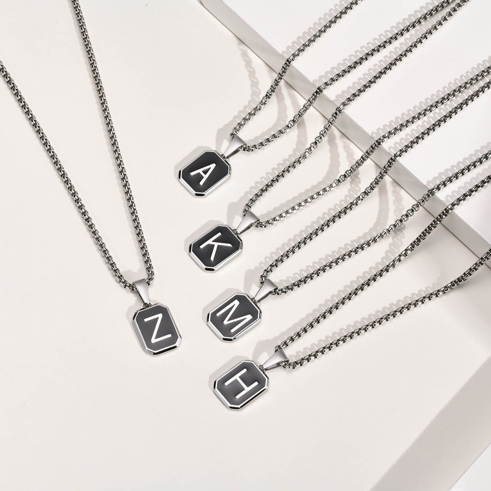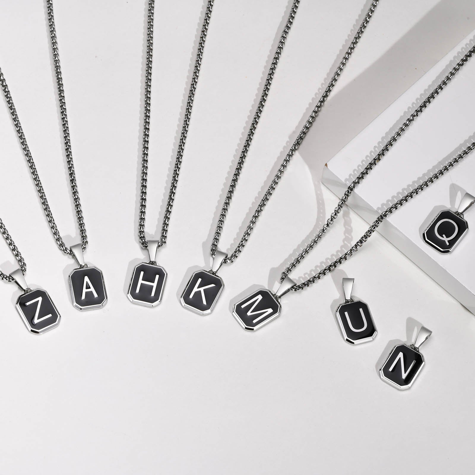 Express your identity with our Alphabet Initial Pendant Necklace, available in all A–Z letters. Crafted from premium stainless steel with a sleek black enamel background and a bold silver initial, this necklace is the perfect personalised accessory for both men and women.